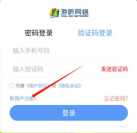 1、首先进入游戏,游戏会弹出下面这个弹窗,如果你以前没有玩过这款游戏,那么请点箭头所指的地方——新用户注册!